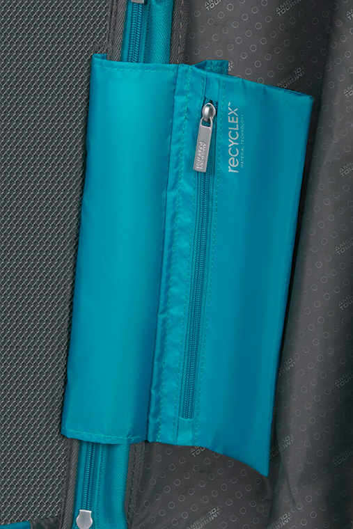 Material - O tecido interior, tecido do fecho de expansão e o fecho de correr são feitos com cerca de 18 garrafas de plástico PET recicladas, utilizando a tecnologia de materiais Recyclex™