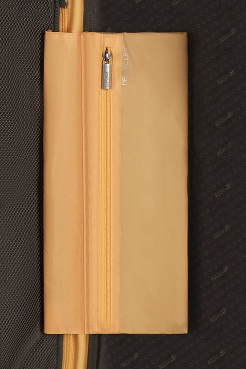 Material - O tecido interior, tecido do fecho de expansão e o fecho de correr são feitos com cerca de 24 garrafas de plástico PET recicladas, utilizando a tecnologia de materiais Recyclex™
