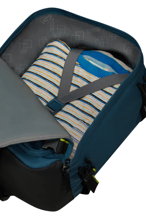 Compartimento Principal - Forrado e com pressintas funcionais, para manteres os teus pertences organizados e seguros durante o transporte