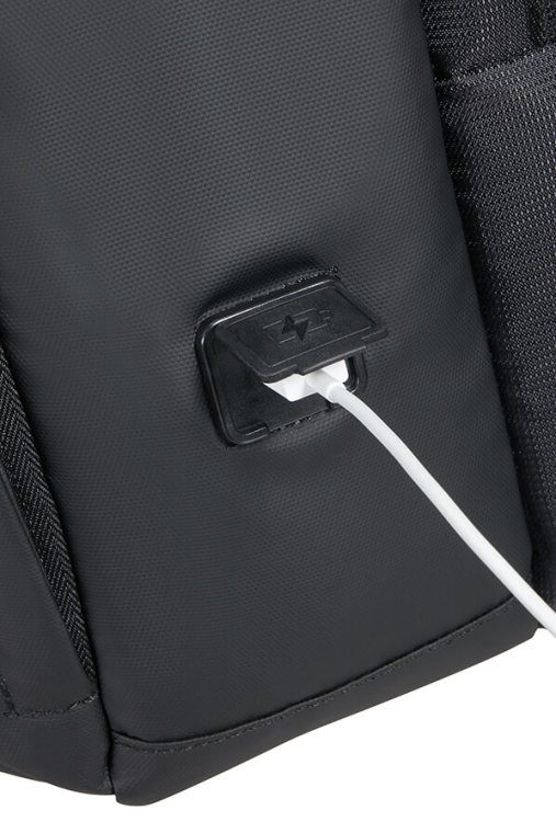 Porta USB - Para ligares a uma powerbank dentro da mochila e carregares os teus equipamentos eletrónicos.
