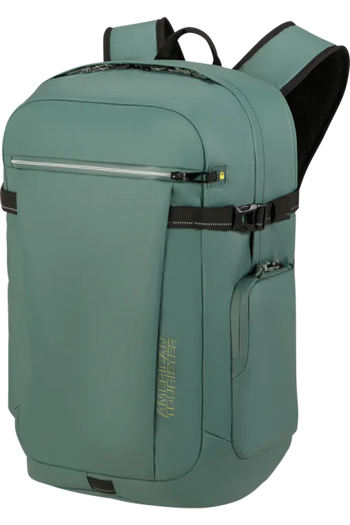 Bolsos Exteriores - Podes contar com vários compartimentos para guardares os teus essenciais: 1 bolso frontal com fecho de segurança inteligente, 1 bolso lateral e um bolso lateral elástico para garrafa