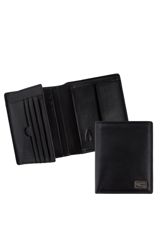 Japan Carteira Porta Notas + Moedas + 7CC Vertical em Pele Preta
