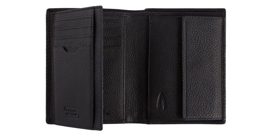 Macau Carteira Porta Notas Vertical em Pele Preta