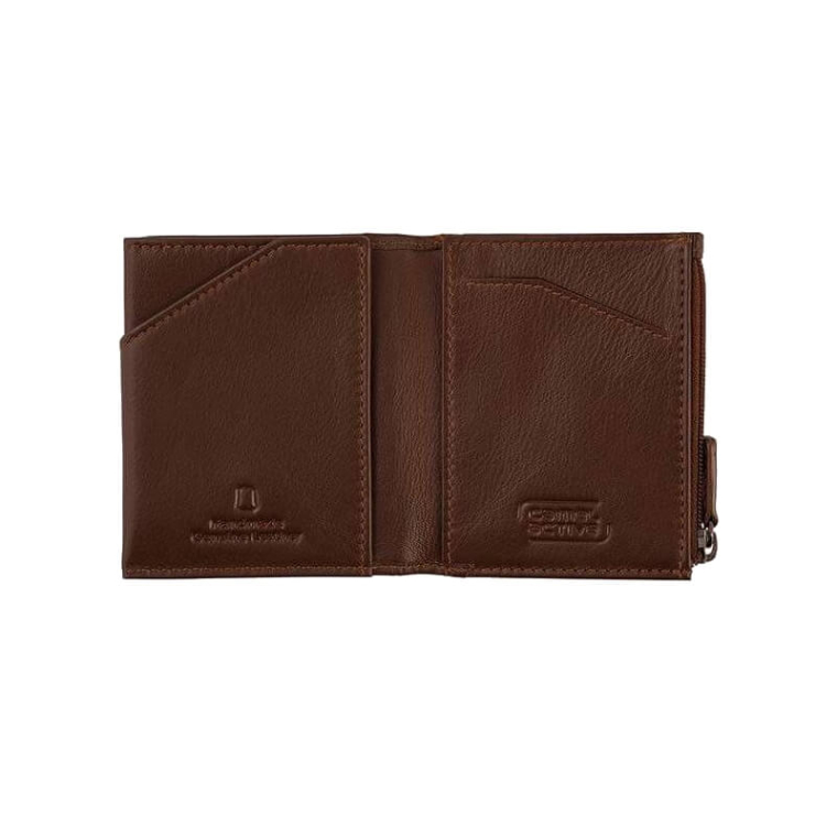 Nagoya Carteira Porta Notas + 3CC + Moedas + RFID em Pele Conhaque