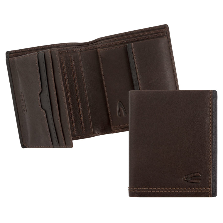 California Carteira de Homem Vertical p/8 cartões c/porta moedas em Pele Castanha