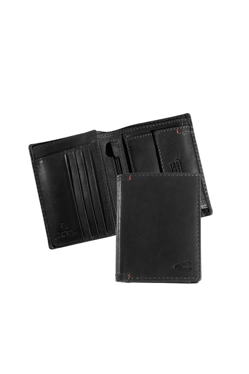 Salamanca Carteira Porta Notas + Moedas + 4CC Vertical em Pele Preta