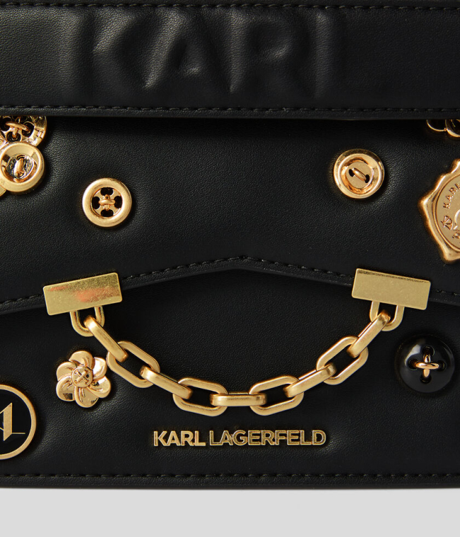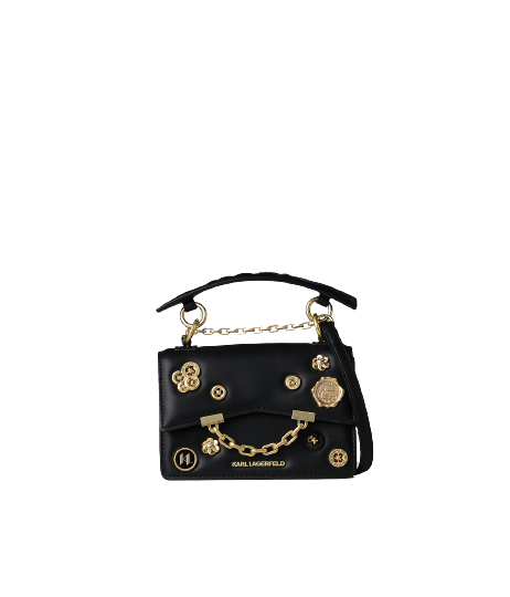 Mala de Tiracolo Mini K/Karl Seven Metal Badges Preta