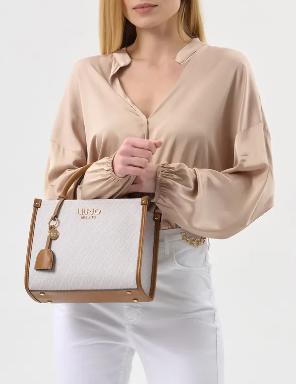 Mala de Mão Pequena com pendente Bege/Castanha