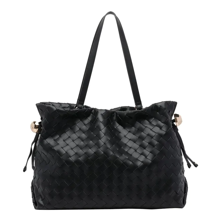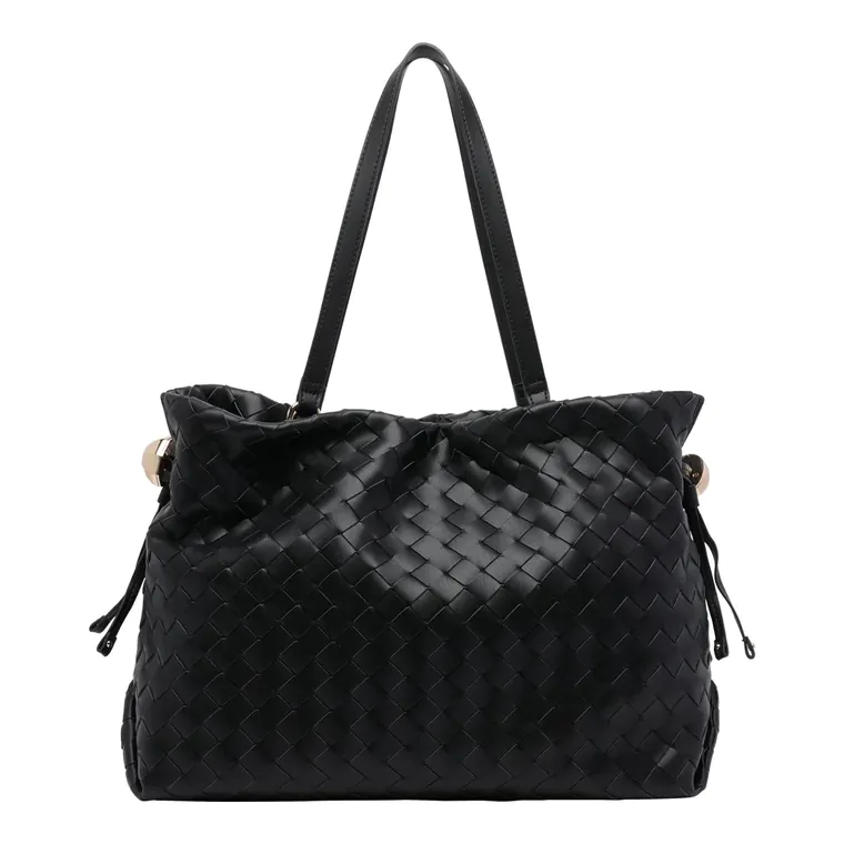 Mala de Ombro Grande Entrançada Preta