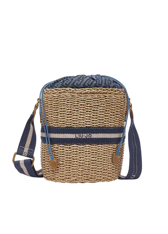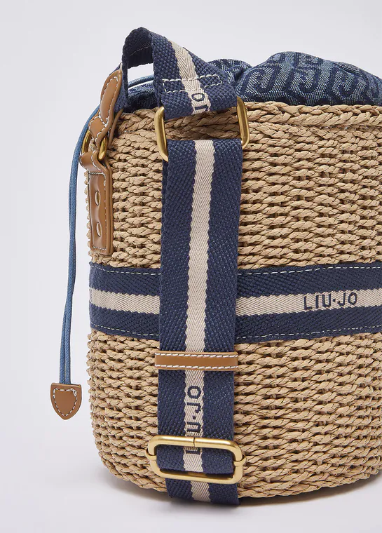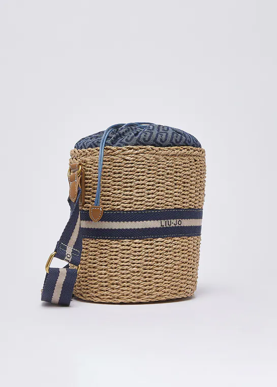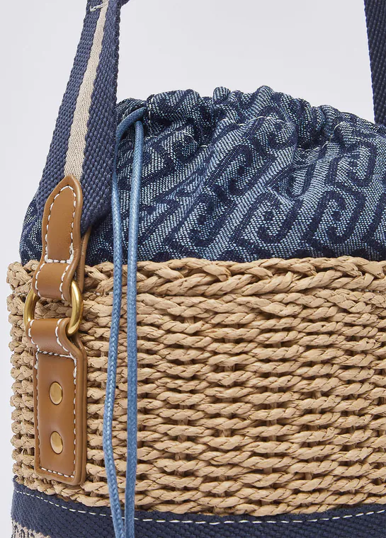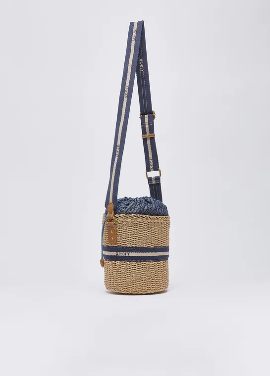 Mala de Tiracolo Bucket de Palha Azul