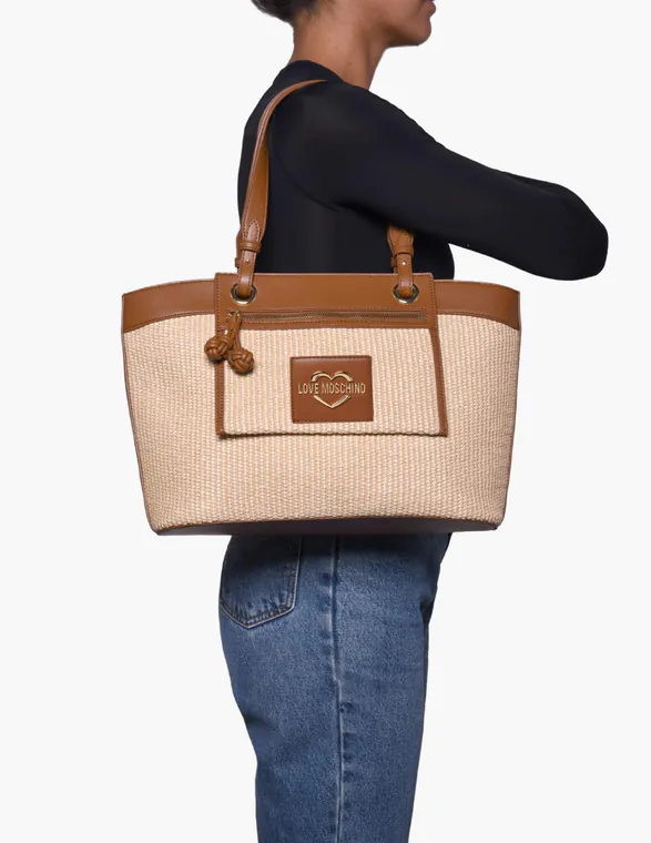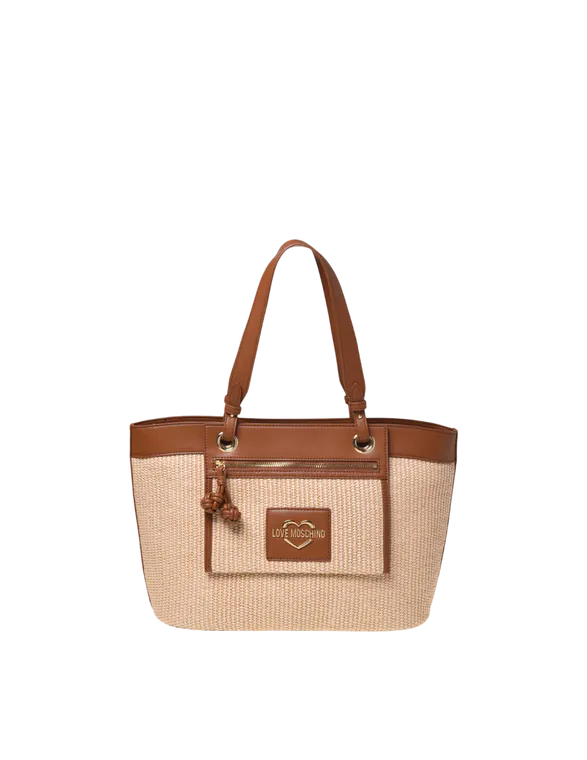 Mala de Ombro/Shopper Straw Bege/Castanha