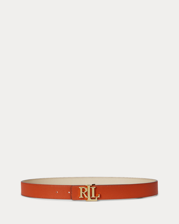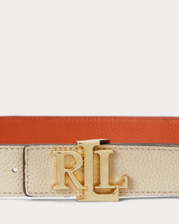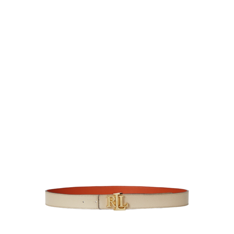 Cinto L Casual Reversível Skinny Bege/Laranja - 2cm