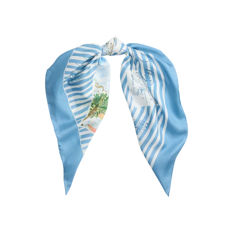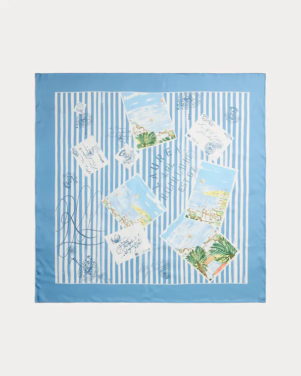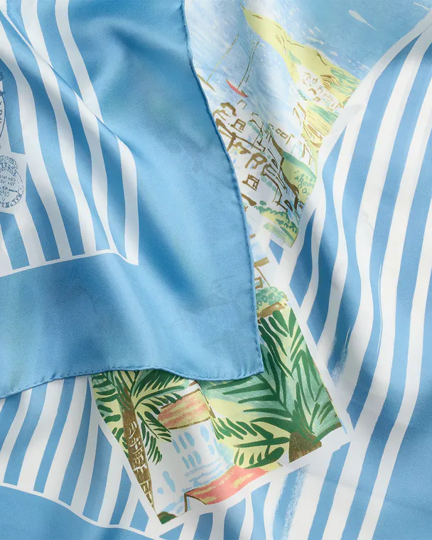 Lenço Quadrado com Riscas em Algodão e Seda Azul
