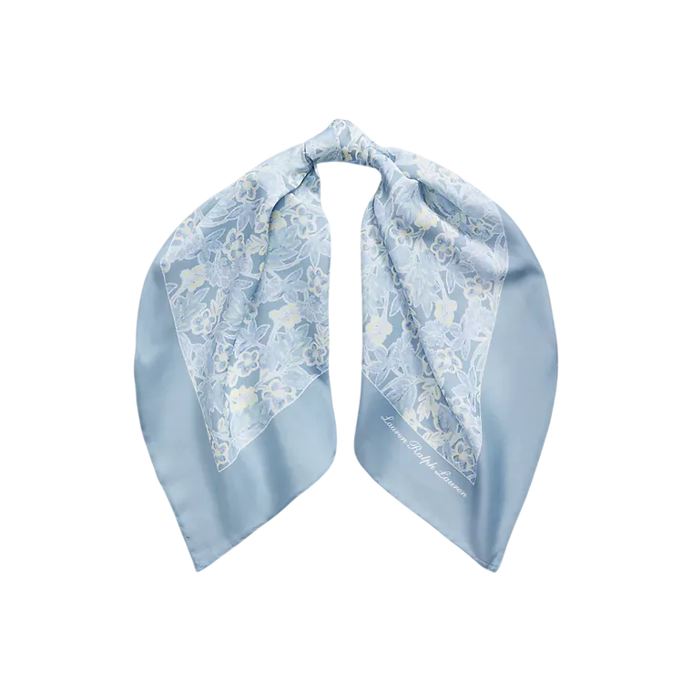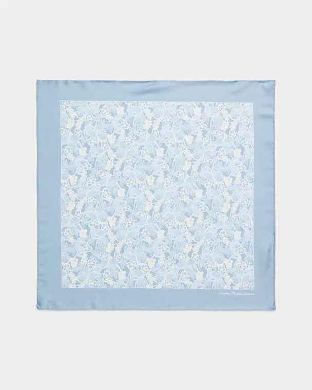 Lenço Quadrado Floral em Algodão e Seda Azul