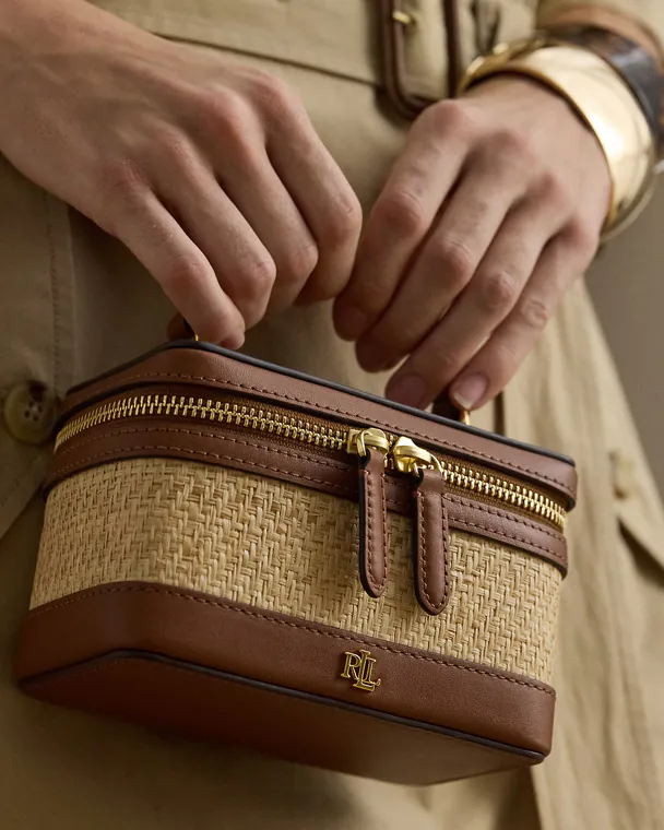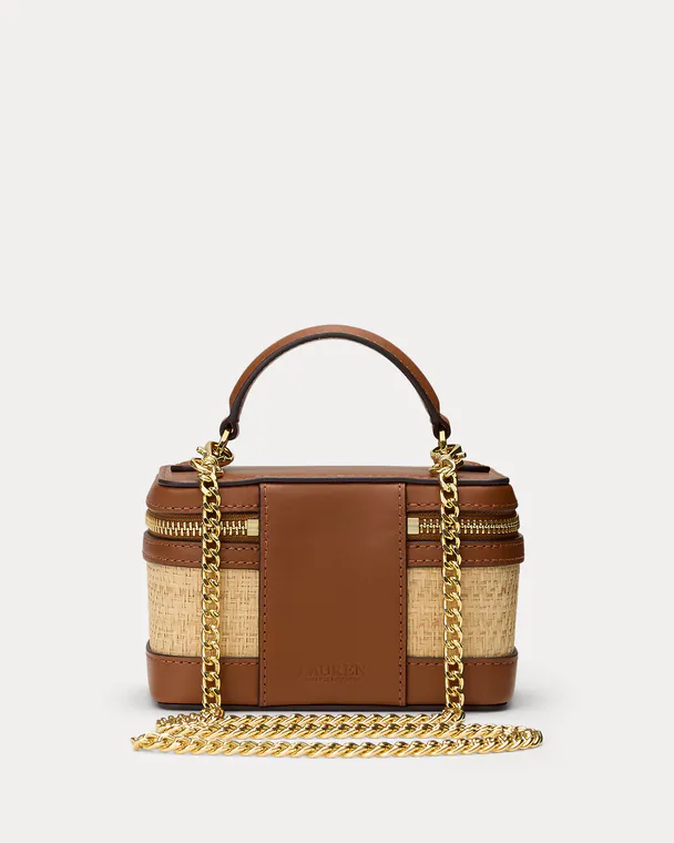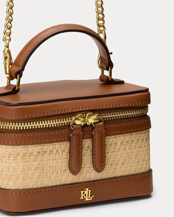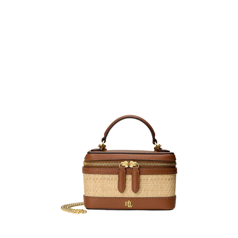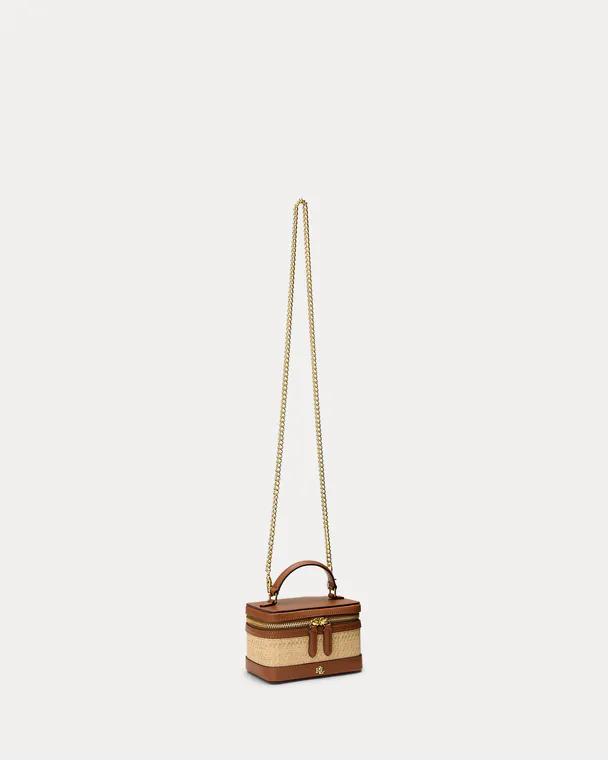 Mala de tiracolo pequena de ráfia Hallee Castanha