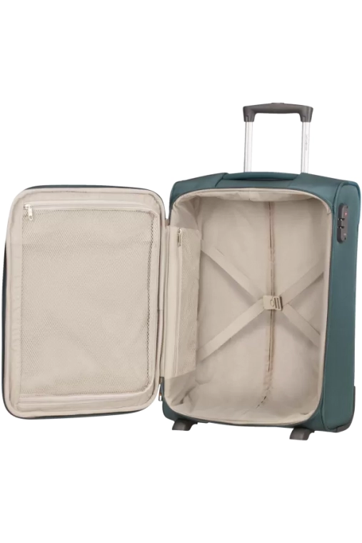 Compartimento Superior - Com divisória em rede com fecho de correr ideal para transportar o vestuário mais delicado.