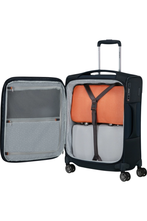 Compartimento Inferior - Com 2 bolsas de arrumação removíveis e cintas ajustáveis para organizar o vestuário sem vincos.