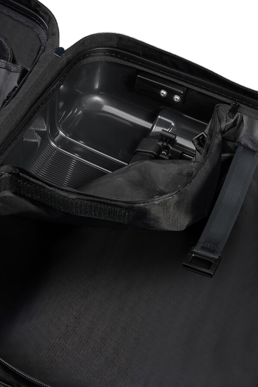 Compartimento Superior - Divisória com fecho de correr e com bolso. Ideal para transportar o vestuário mais delicado.