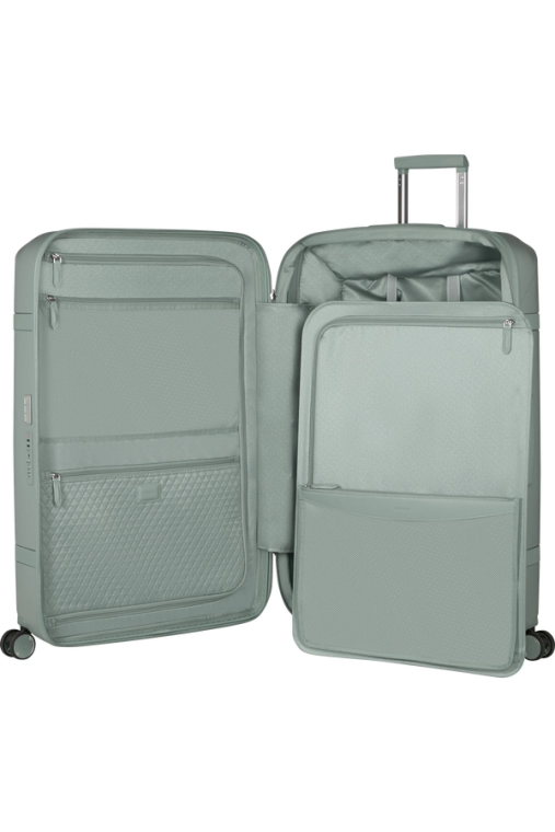 Compartimento Inferior - Divisória flutuante com um bolso grande com 5 cm de profundidade. Cintas ajustáveis para organizar o vestuário sem vincos.