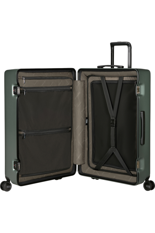 Compartimento Inferior - Com painel dividor removível com um bolso grande integrado. Cintas verticais ajustáveis em altura para maior organização do vestuário sem vincos.