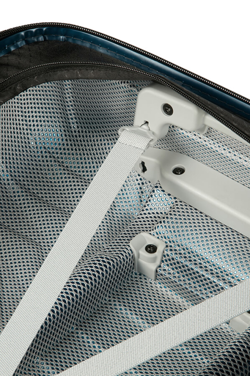 Compartimento Superior - Divisória com fecho de correr e com bolso em rede. Ideal para transportar o vestuário mais delicado.