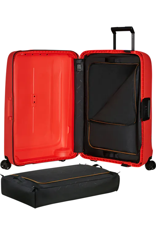 Compartimento Superior - Sistema Packfix™: bolsa de arrumação removível, ajustável em altura e lavável à mão. Fácil de transportar.