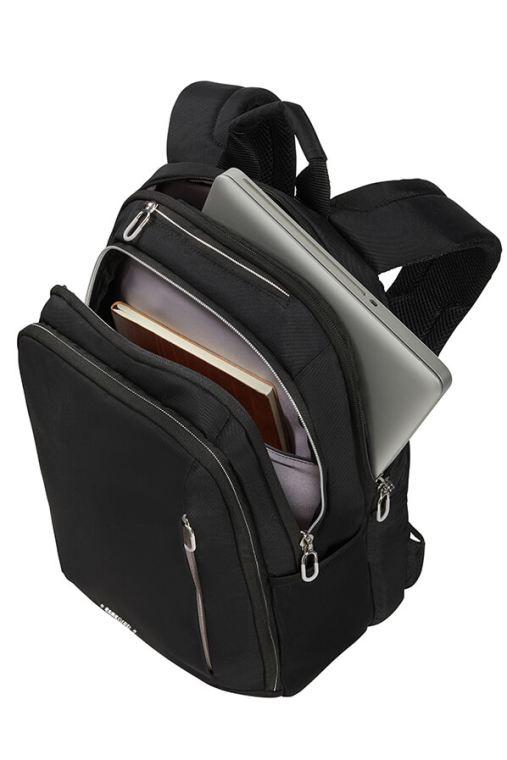 Compartimento Principal - Amplo e com divisória para documentos. Inclui 1 bolso almofadado para portátil e prara tablet com uma cinta de segurança de velcro, para proteger os seus dispositivos enquanto viaja.
