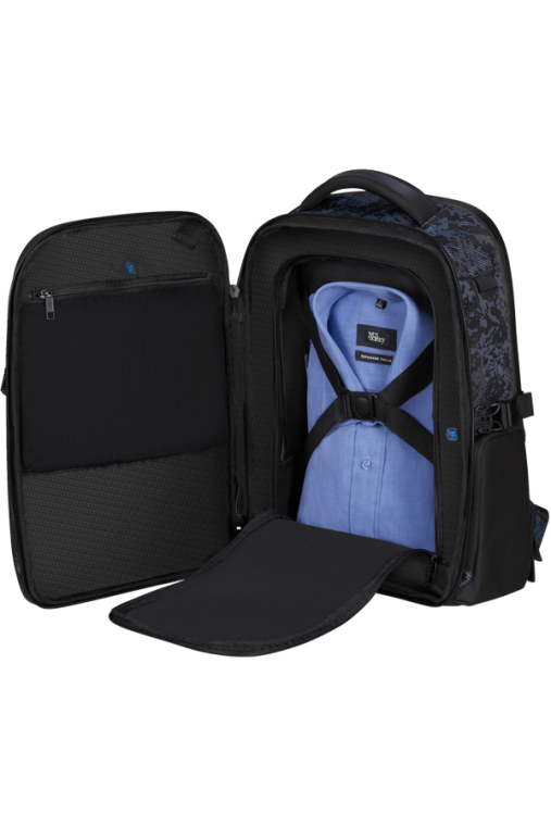 Compartimento | Vestuário - Com cintas cruzadas, permite transportar organizadamente uma muda de roupa.