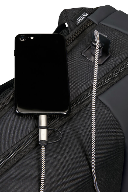 Sistema Easy Pass - Carregue os seus dispositivos dentro da mochila c/ a passagem de cabos entre os diferentes compartimentos.