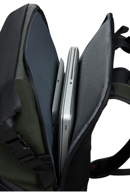 Compartimento | Portátil - Dedicado e acolchoado para transportar o portátil em segurança e fechos bloqueáveis com cadeado (vendido separadamente).