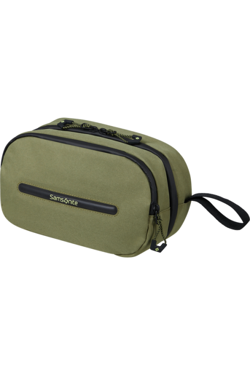 Compartimento Principal - Com organização genérica. Com elásticos para organizar os seus produtos e acessórios de higiene.