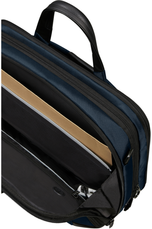 Sistema Easy Pass - Carregue os seus dispositivos dentro da pasta com a passagem de cabos entre os diferentes compartimentos.