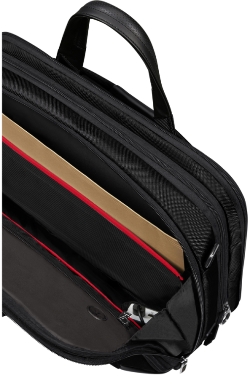Sistema Easy Pass - Carregue os seus dispositivos dentro da pasta com a passagem de cabos entre os diferentes compartimentos.