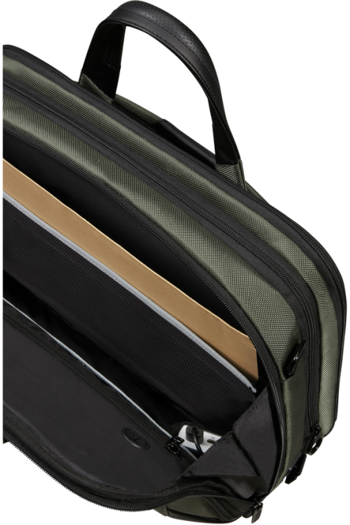 Sistema Easy Pass - Carregue os seus dispositivos dentro da pasta com a passagem de cabos entre os diferentes compartimentos.