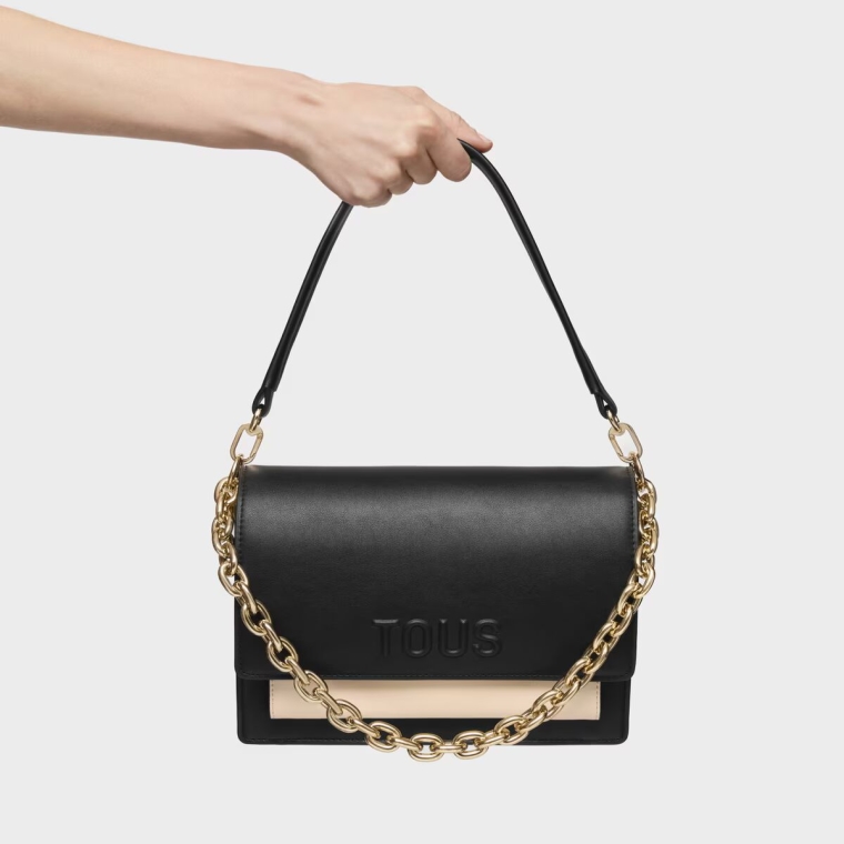 Mala de Tiracolo Média Audree Chain Kaos Icon Preta/Bege